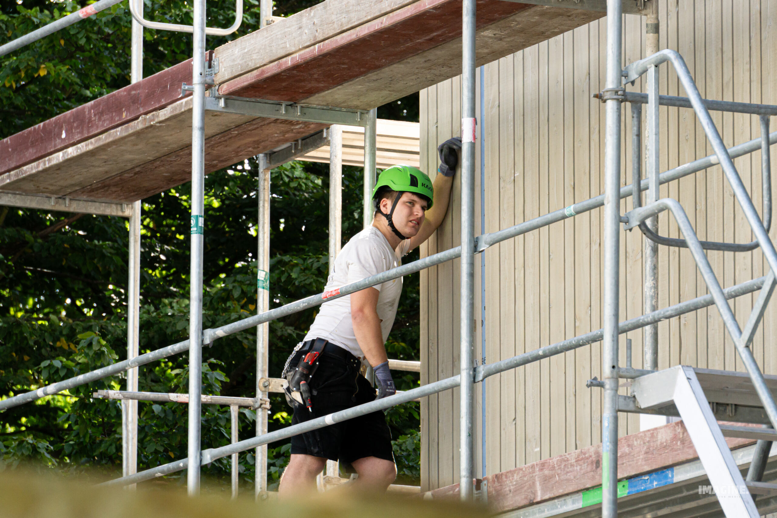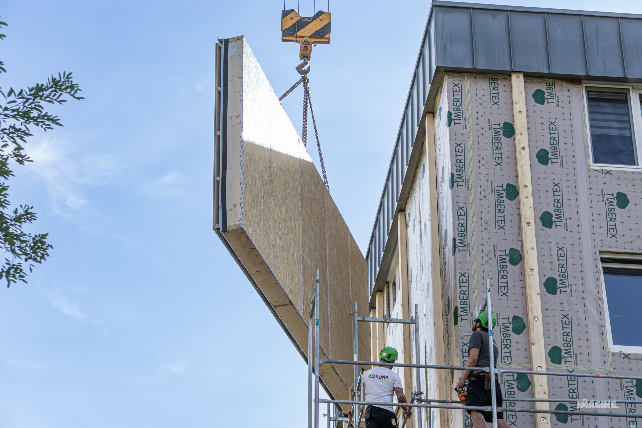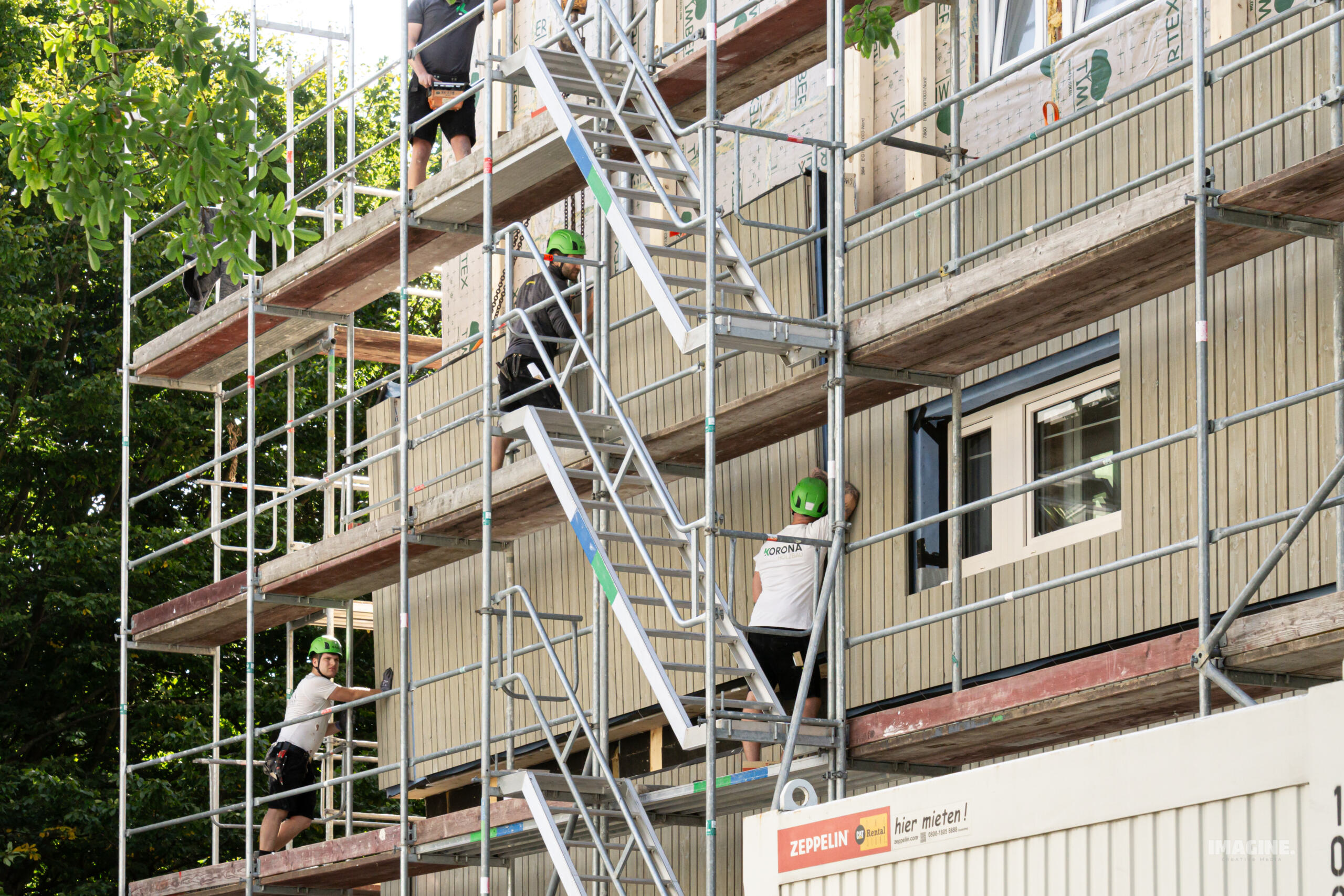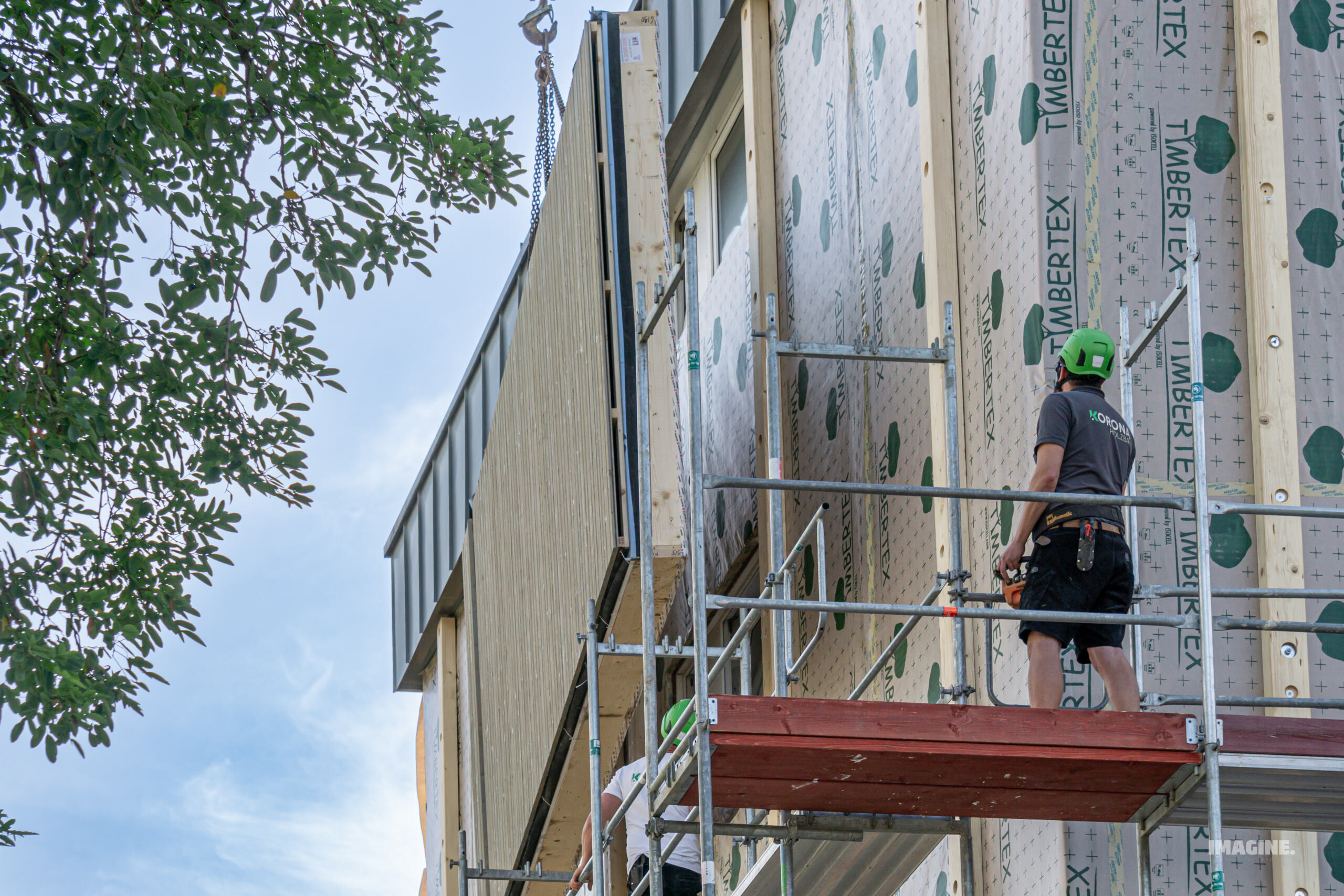 • Kompetenz unter Beweis gestellt – Mit der Montage vorgefertigter Fassaden beweist Korona technisches Know-how und Innovationskraft.